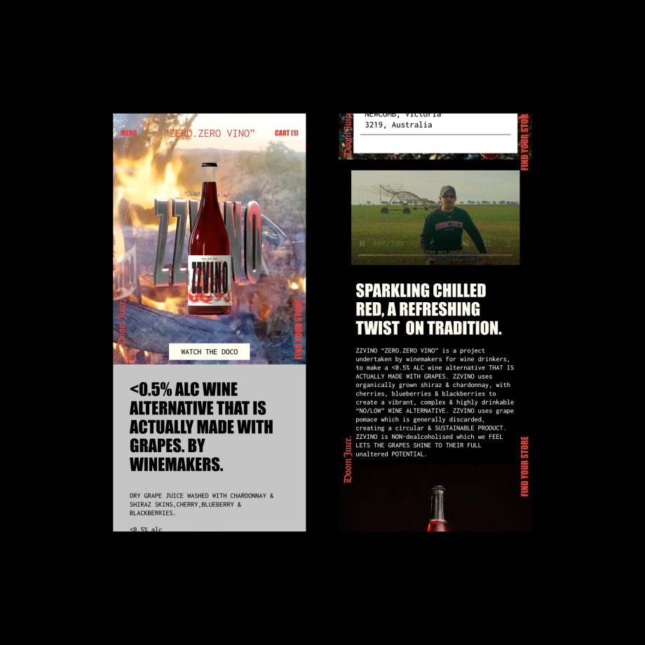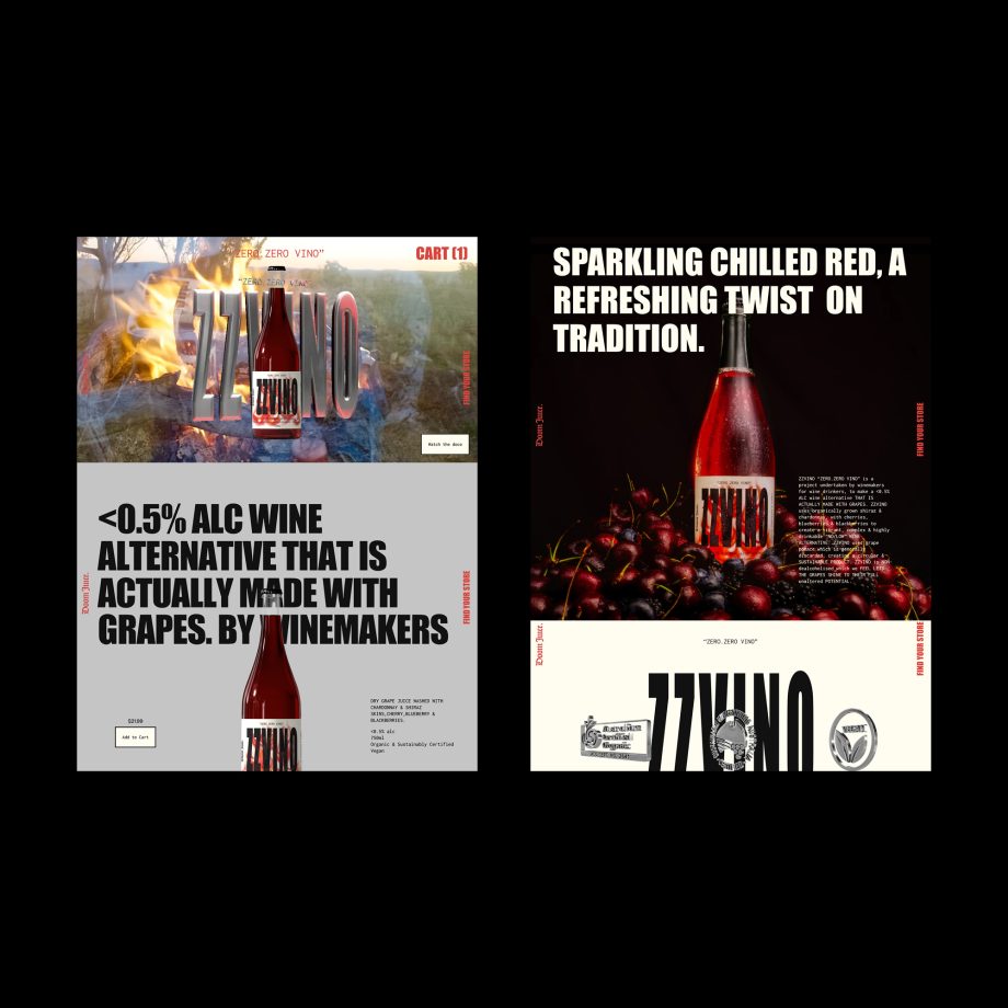 The result? A custom Shopify page built directly into their existing website — seamlessly blending new branding, bold typography, 3D artwork, and a punchy brand video to bring their latest creation, ZZ Vino, to life.